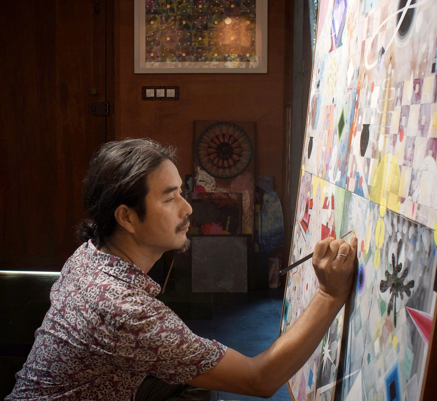 Jyoti Naoki Eri (Mr) is a Japanese multidisciplinary artist who has been residing in Auroville for the past 20 years. Drawing on his unique artistic and cultural background, as well as his profound interest in spirituality and modern science, he has been working on a series titled “Landscapes of Time and Spirit” for the past five years.
