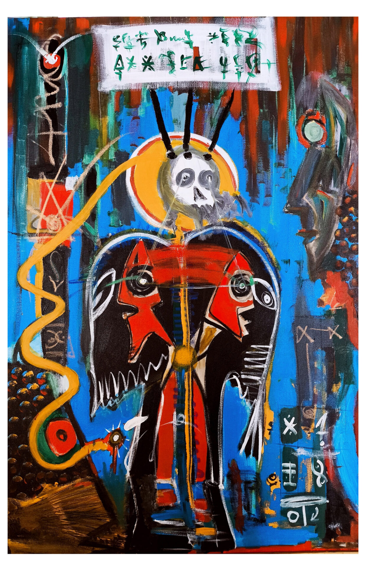 Rishi’s paintings seek to break through the veil of perception, exploring the hidden layers of psychology and spirituality. He creates a made-up language of symbols and abstraction, driven by a longing to unveil what lies beyond illusion. Each brushstroke is a step toward the unknown, inviting viewers to confront their inner landscapes and question what’s behind the curtain of reality. Rishi’s artistic approach is highly intuitive, unfolding organically rather than adhering to a fixed structure. He primarily works with acrylic on canvas and charcoal on paper, layering color, texture, and gestural marks. An essential element of his work is an evolving script of invented symbols—a personal visual language that remains open to interpretation, inviting viewers to find their own meaning.His brushstrokes are instinctive and fluid, shaping movement and depth in a way that feels more channeled than planned. He welcomes unpredictability, often scraping, erasing, and reworking the surface to uncover hidden forms and emotions. This meditative process allows him to access a deeper state of consciousness, where painting becomes a bridge between the tangible and the unknown.